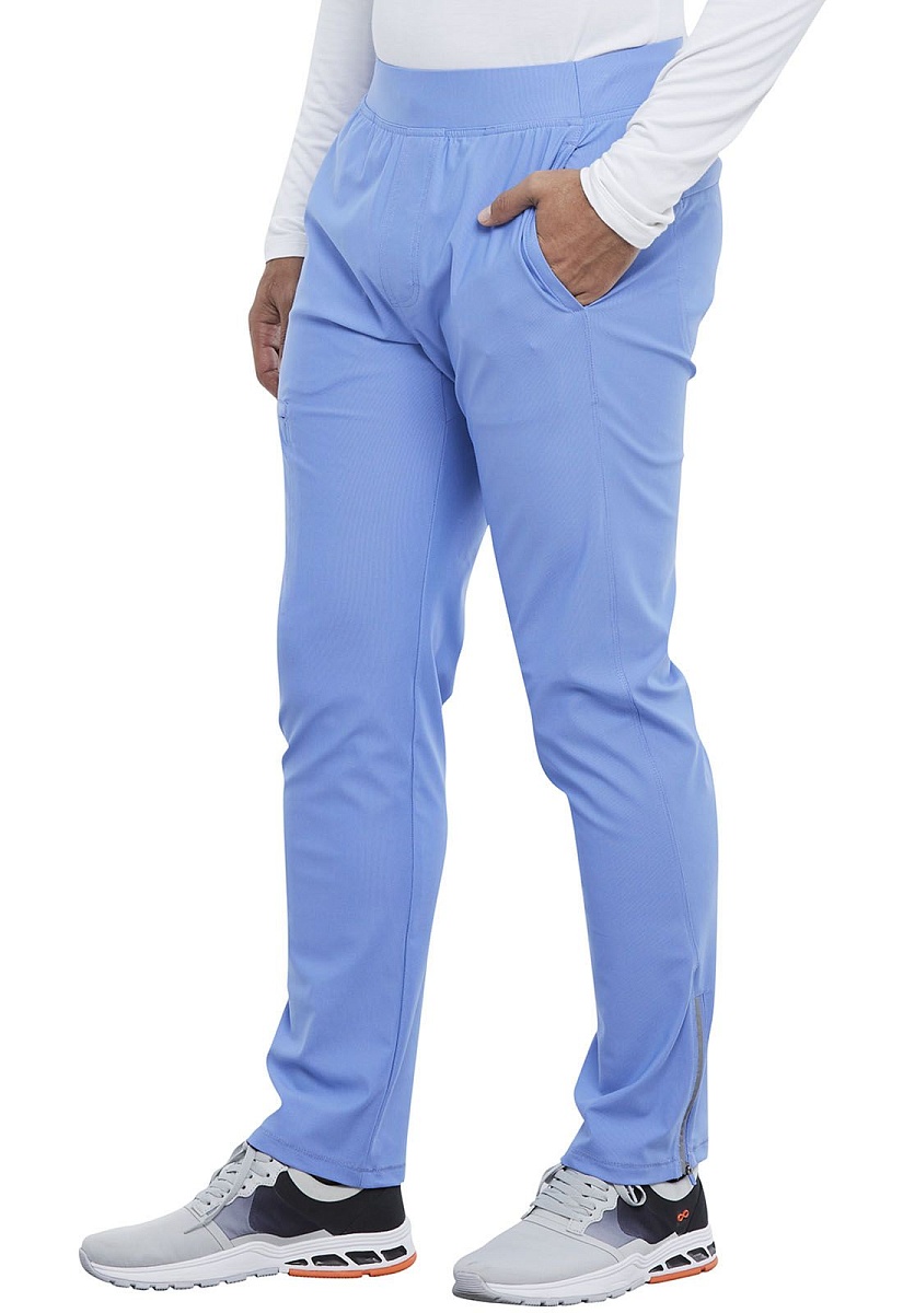 Эти мужские зауженные брюки из базового каталога – превосходный образец профессионального стиля. Их отличительные черты – это цельный эластичный пояс, очень мягкий и комфортный, декоративная ширинка, пять вместительных карманов и роскошная ткань, растяжимая в четырёх направлениях. Вентиляционные разрезы по бокам застёгиваются на «молнию», что позволяет регулировать их глубину.
