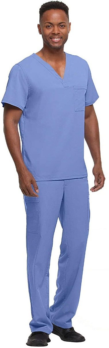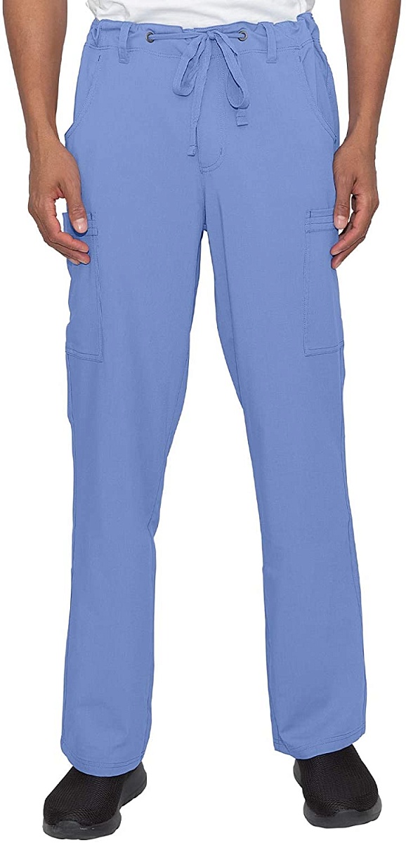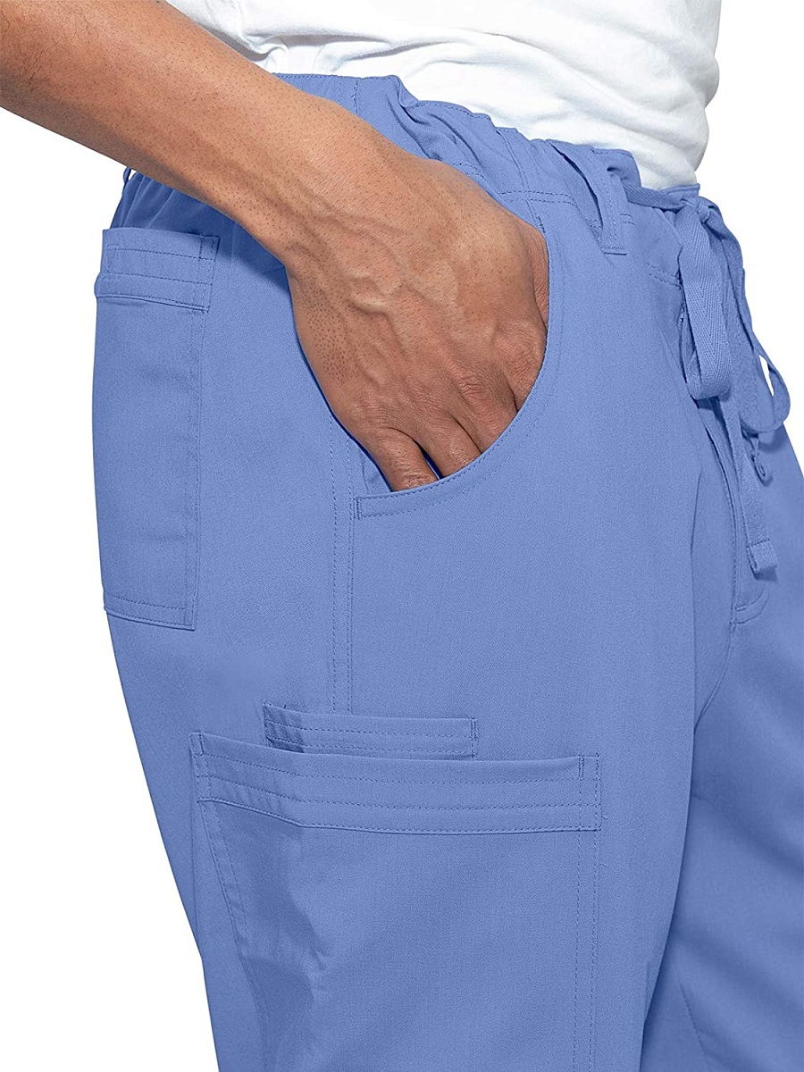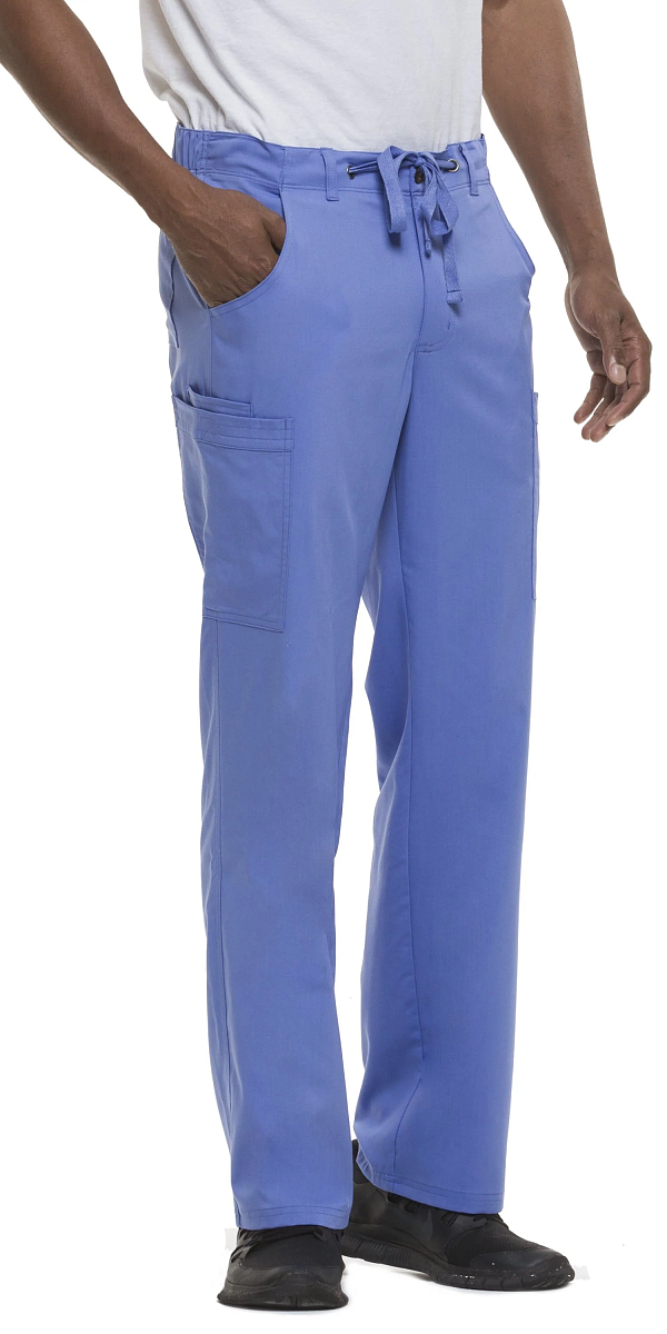 Комфорт, функциональность, стиль. В этой модели есть все. Классически прямые брюки с поясом на пуговице и ширинкой на молнии дополнены шнурком для регулировки обхвата талии и всевозможными карманами, подчас совершенно необходимыми доктору на работе. Брючные карманы с J-образным входом – куда без них – это мастхэв мужских брюк. Накладные карманы по бокам и сзади подойдут под любой комплект аксессуаров – телефон, ножницы, ручка…