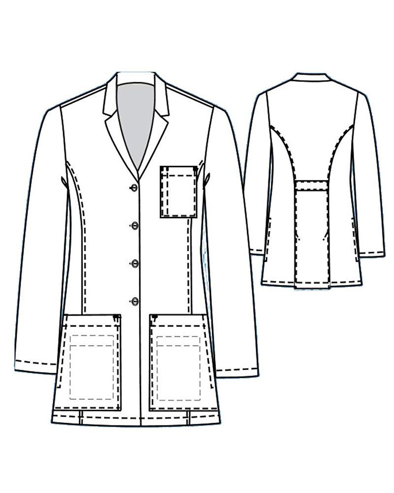 Это строгий и элегантный лабораторный халат. Зубчатый английский воротник, качественная отстрочка, длинный втачной рукав со спущенным плечом, декоративный хлястик и двойная шлица сзади создают законченный образ настоящей леди. Передние и задние корсетные швы подчёркивают силуэт. Семь удобно расположенных карманов помогут вам держать при себе всё, необходимое для работы.