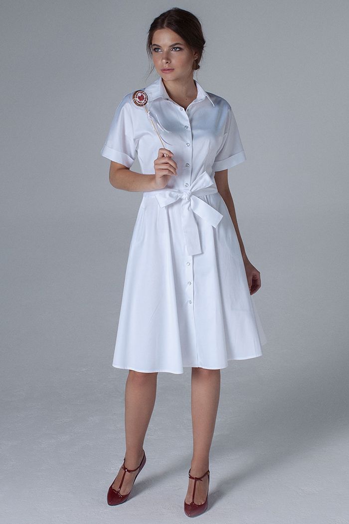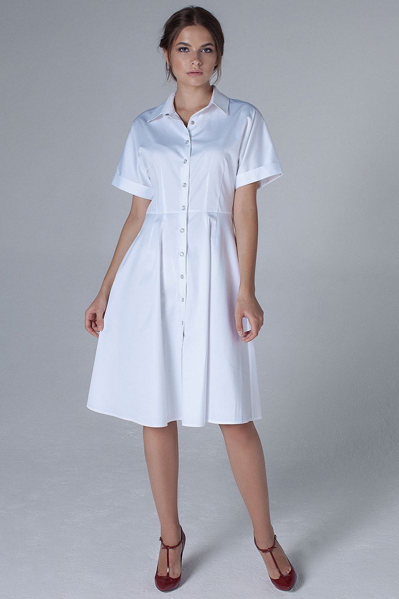 Платье-халат в стиле «Сафари» с коротким рукавом и застежкой на кнопках.