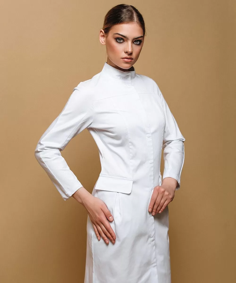 Халат минималистичного дизайна с комбинированными длинными рукавами и кокеткой, образующими сплошную линию.