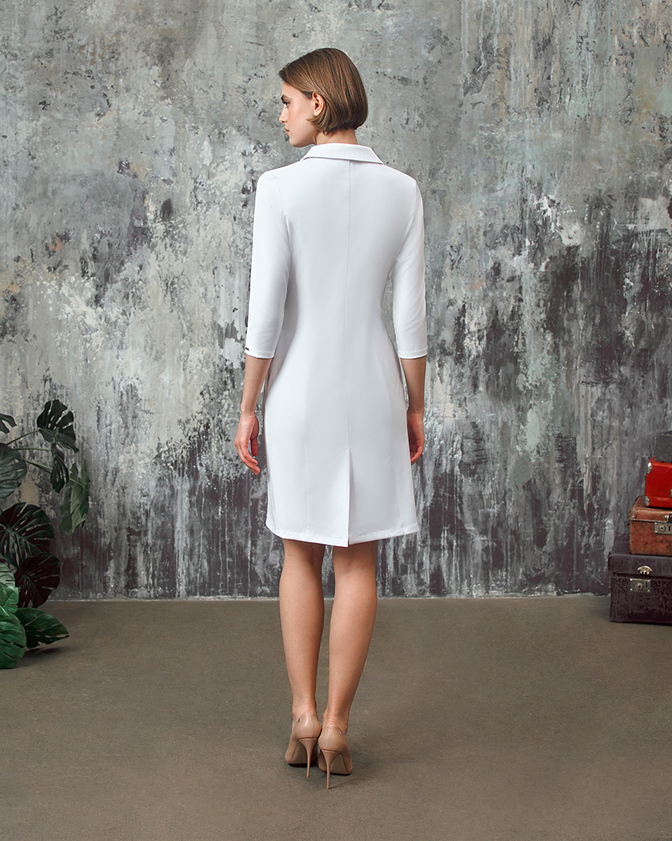 Удобные незаметные карманы в боковых швах, оптимальная длина рукава ¾ и глубокая шлица отвечают за комфорт в повседневной рабочей жизни.