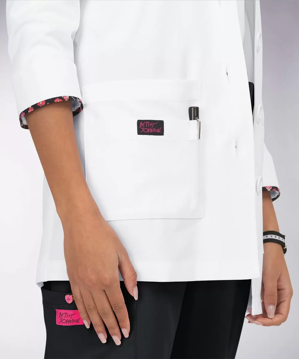 Кто сказал, что вы не можете выглядеть профессионально и, при этом, стильно? У лёгкого лабораторного халата Canna, разработанного совместно с модельным домом Betsey Johnson, есть всё, чтобы он полюбился вам сразу и на долго. Классические формы этой модели сочетаются с игривым стилем, свойственным всему каталогу от Бэтси. Английский воротник смотрится мягко и женственно. Укороченный подол очень удобен. Четыре накладных кармана вместительны и оформлены со вкусом. Отделение для мобильного телефона застёгивается на фирменную кнопку в форме сердечка. Мягкая и тонкая ткань слегка тянется, обеспечивая идеальную посадку. Кроме того, она очень проста в уходе. Внутренняя сторона ворота и манжет украшена цветным принтом.