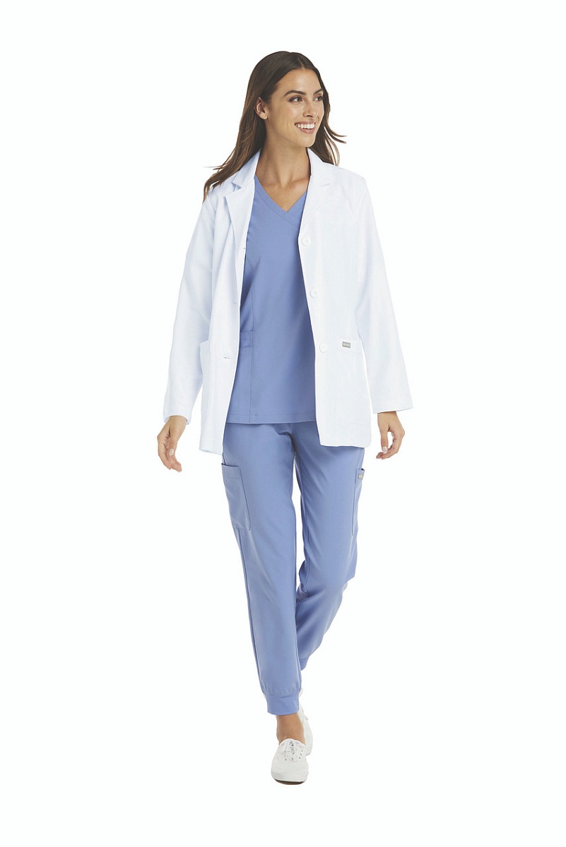Этот лёгкий, современный и стильный медицинский халат от MAEVN - ваш идеальный помощник! Сшитый из немнущейся гигиеничной ткани, он поддерживает комфортную температуру тела, сохраняя при этом свежесть и аккуратный вид. Особенности фасона - это облегчённый классический крой, английский ворот, застёжка на три крупных пуговицы в тон, вертикальные вытачки спереди и сзади для создания чёткого и строгого силуэта, удобные накладные карманы с отделением для смартфона.
