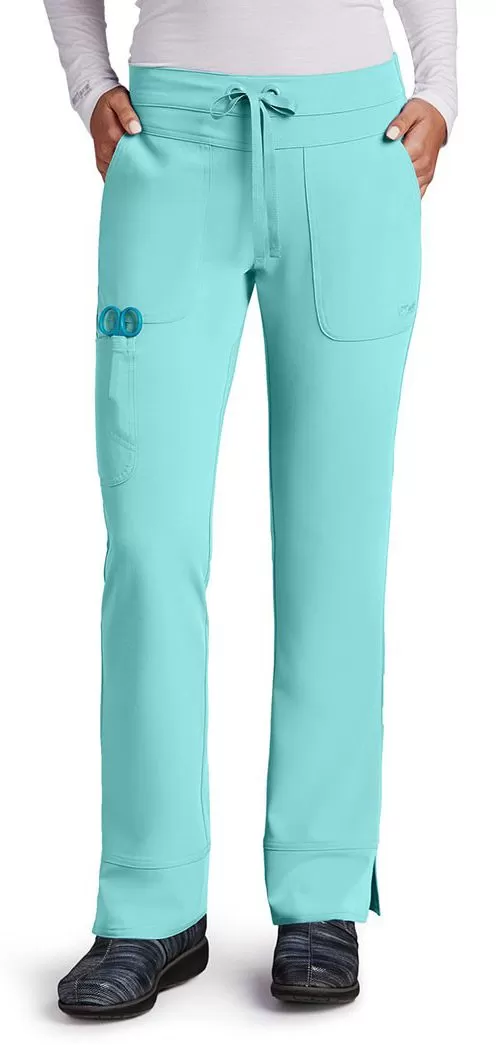 Комфортные эластичные женские брюки. Отличаются низкой посадкой, прямым кроем узких бедер и очень удобным поясом. Талия выполнена из широкой трикотажной резинки, оснащена лентой-завязкой саржевого плетения для регулировки обхвата и дополнена узкой кокеткой спереди и сзади. Модель имеет три накладных кармана, два передних и один боковой. Один из передних карманов оформлен логотипом серии, а боковой имеет отстроченную секцию для ручки или карандаша. Интересная деталь кроя – это наставки внизу штанин с разрезами. Карманы и ряд других деталей брюк отделаны двойной «джинсовой» строчкой.