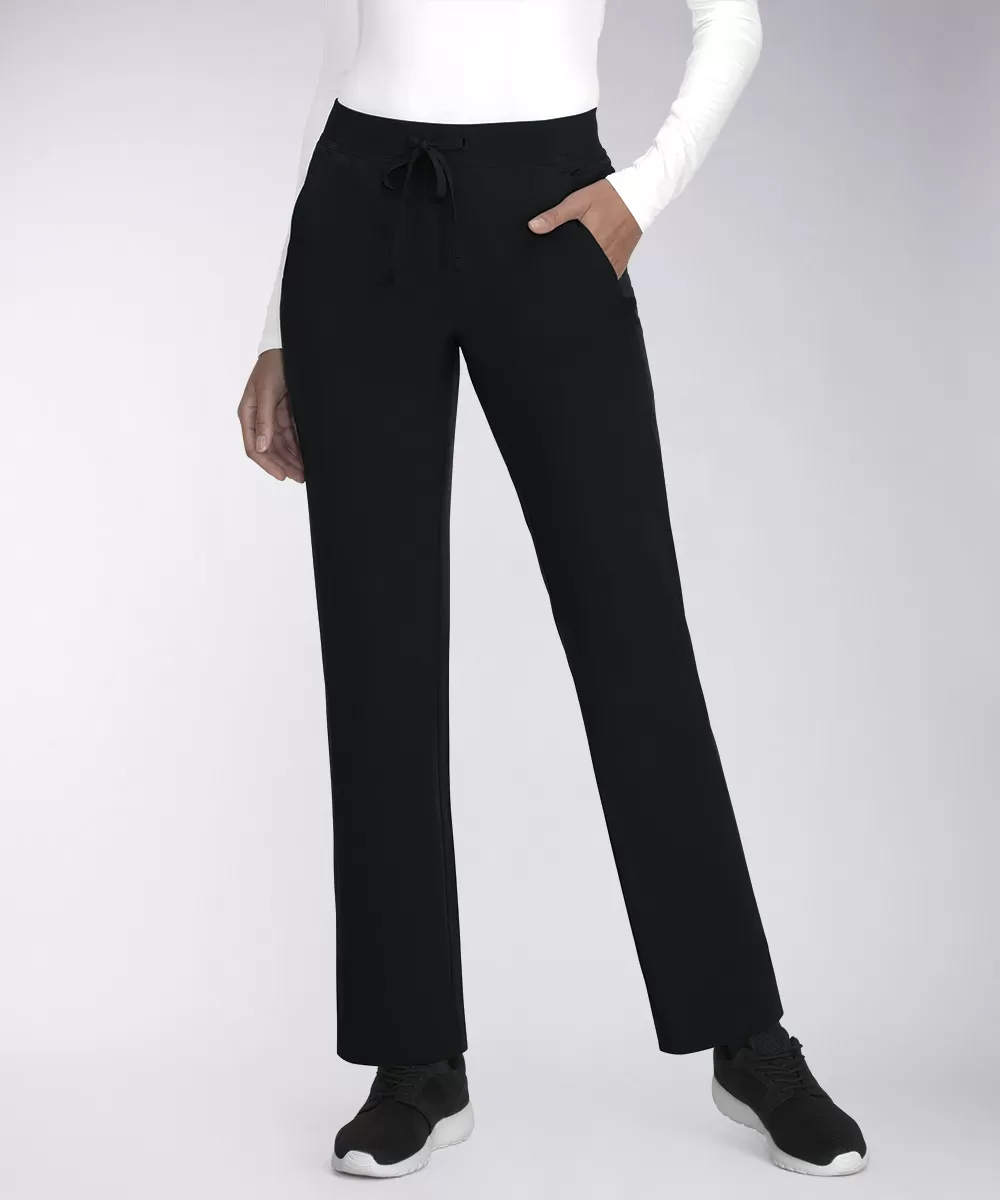 Эта прямые брюки, удачно сочетающие классический силуэт и комфорт спортивного стиля. Мягкий пояс из рубчатого трикотажа дополнен эластичным шнуром, регулирующим плотность посадки. Трикотажные вставки по бокам и кокетка со стороны спинки обеспечивают идеальную посадку на бёдрах для любого типа фигуры. Два глубоких кармана с отрезным бочком дополнены небольшими разгрузочными кармашками. Снизу на брючинах есть вентиляционные разрезы. Для наилучшего сочетания стилистики и цветов рекомендуем комбинировать эти брюки c медицинским топом Eco или Longevity из коллекции Planet Koi.