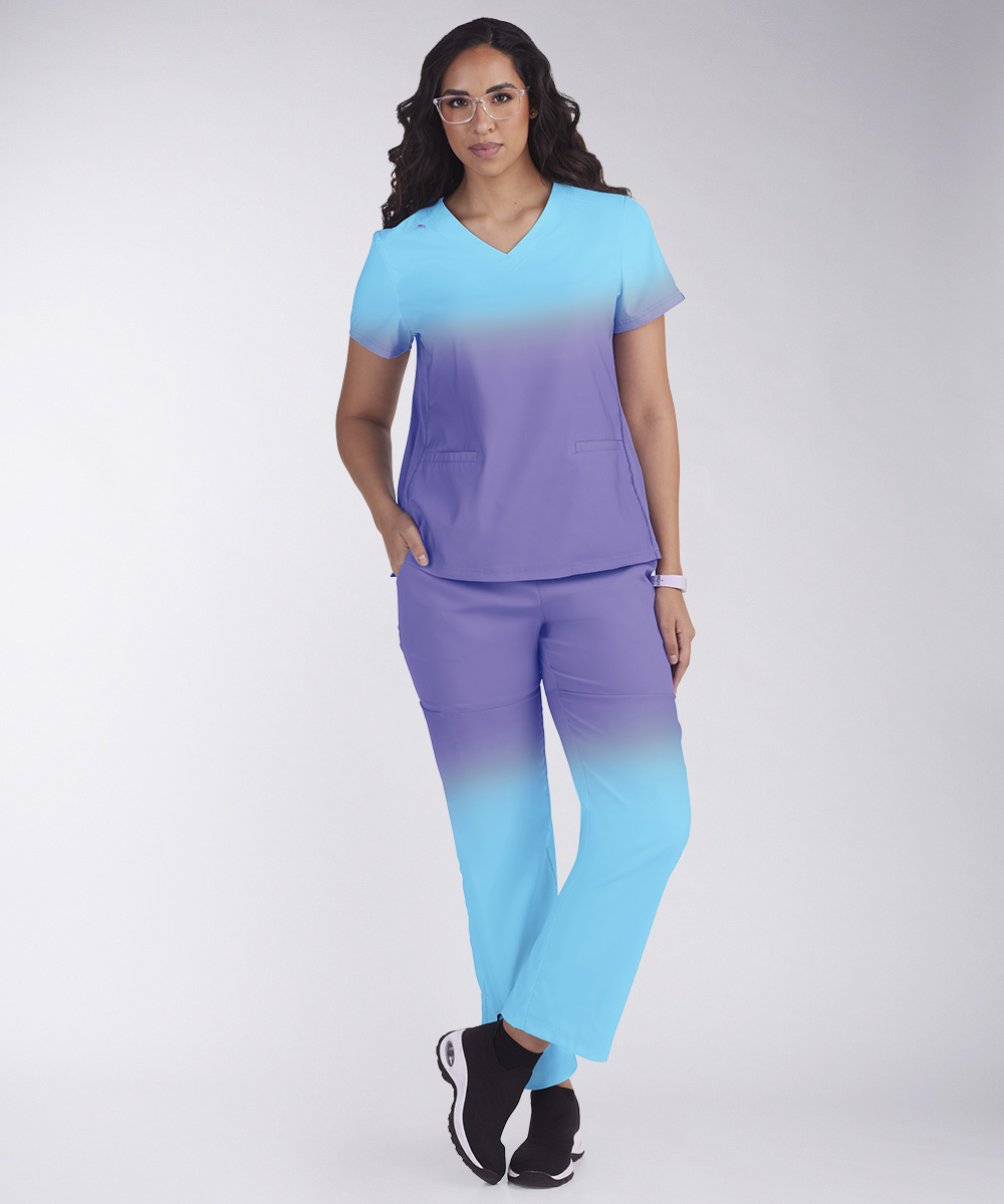 Эти стильные прямые брюки созданы для того, чтобы привлекать внимание! Модная окраска омбре в сочетании с яркими и сочными неоновыми оттенками сочетается с комфортом настоящей профессиональной одежды от KOI.