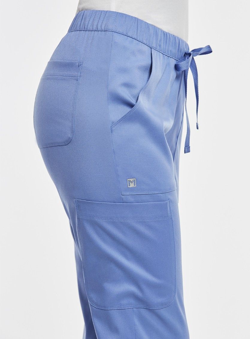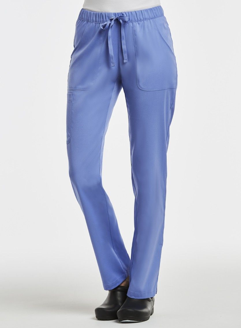 Модные медицинские брюки с эластичным поясом и большими карманами, немного зауженные книзу. Выполнены из мягкой поливискозной саржы со стрейч-эффектом, гигиеничной и простой в уходе.