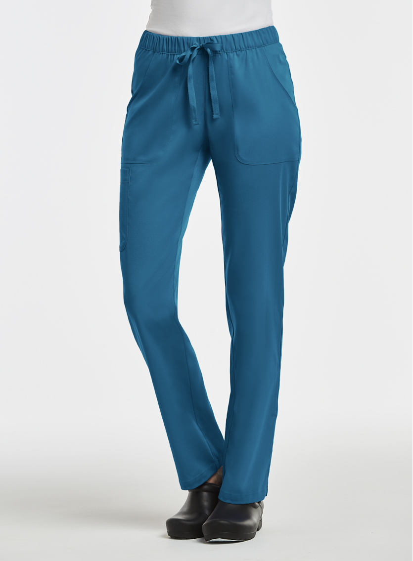 Модные медицинские брюки с эластичным поясом и большими карманами, немного зауженные книзу. Выполнены из мягкой поливискозной саржы со стрейч-эффектом, гигиеничной и простой в уходе.