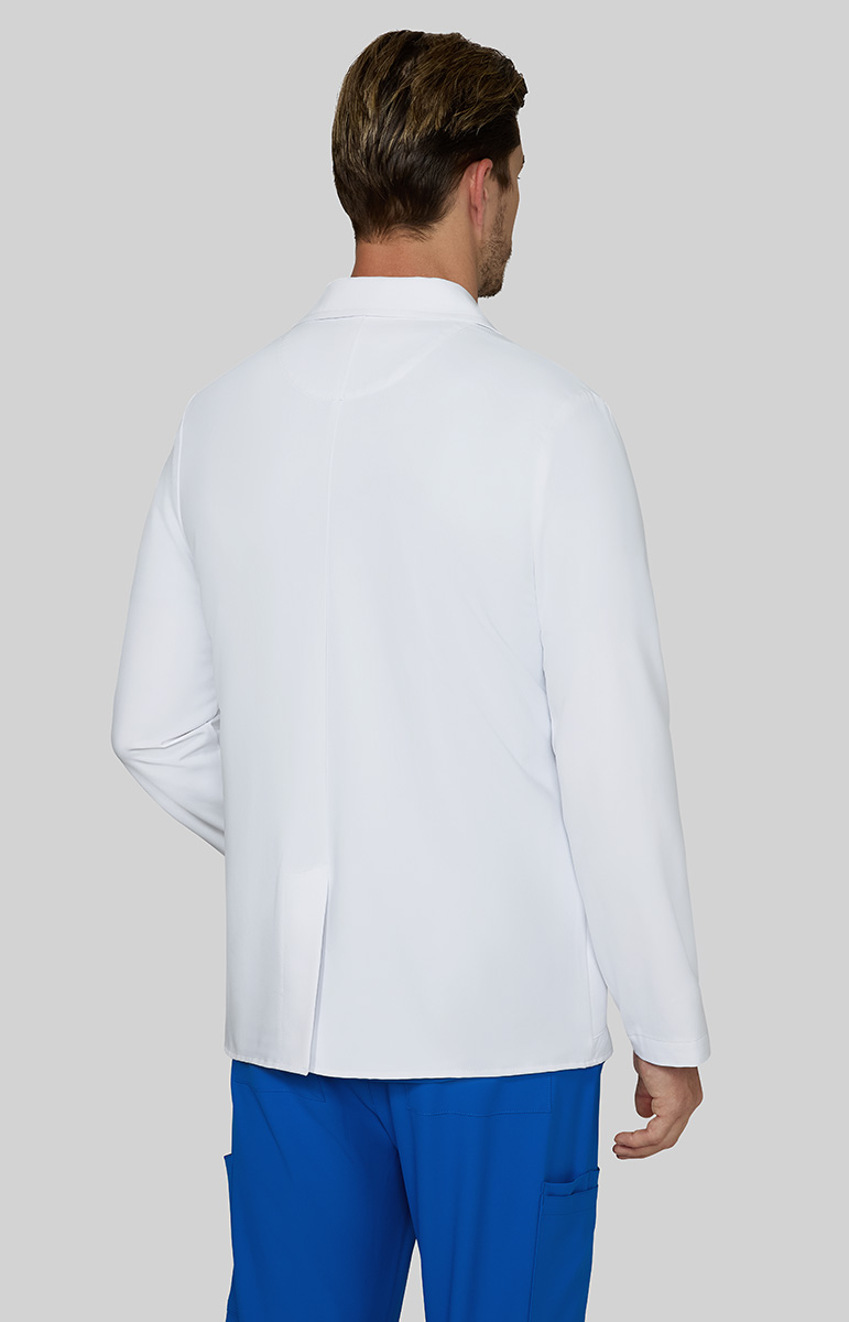 Легкий и комфортный укороченный мужской жакет представлен классической застежкой спереди на пуговицы и объемными вместительными карманами. Строгий воротник с лацканами, длинный рукав, центральный шов сзади и глубокая шлица создает идеальный профессиональный образ.