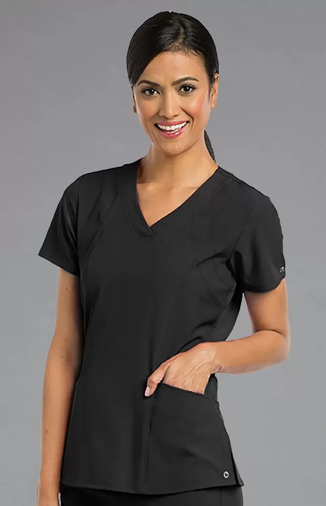 Современный элегантный женский топ из коллекции Barco One с V-образным вырезом горловины. Супер мягкая 4-сторонняя стрейч-ткань, обладающая прекрасными гигроскопичными и грязеотталкивающими свойствами выполнена по технологии arctech™. Долговечна и практически не мнется. Короткие втачные рукава. Передние и задние швы "принцесса". Перфориванная задняя и передние вставки. Изогнутая задняя кокетка. Два сдвоенных накладных передних кармана и внутренний кармашек для аксессуаров или мобильного телефона. Для отличной вентиляции и свободы движений предусмотрены боковые разрезы.