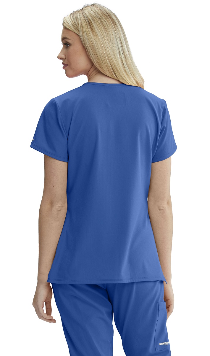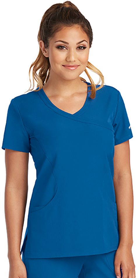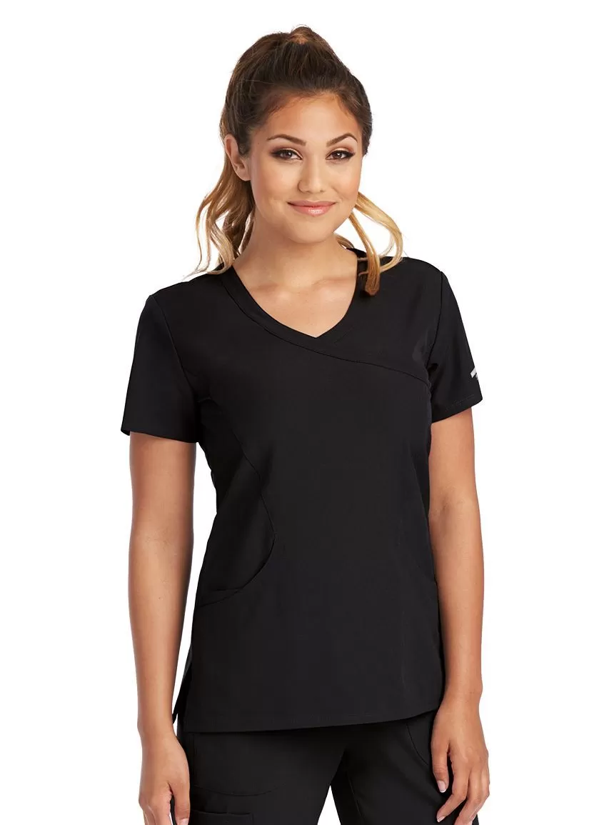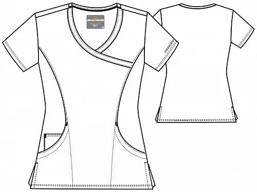 Оригинальная женская блузка с Y-образным вырезом горловины и имитацией широкого запаха. Современный спортивный стиль. Короткие втачные рукава. Фронтальные швы "принцесса". Изогнутые боковые карманы и внутренний карман для аксессуаров или мобильного телефона. Супер мягкая, легко растягивающаяся четырех-сторонняя стрейч ткань прекрасно впитывает влагу, обладает грязеотталкивающими свойствами и практически не мнется. Нижние разрезы для превосходной вентиляции и свободы движений.