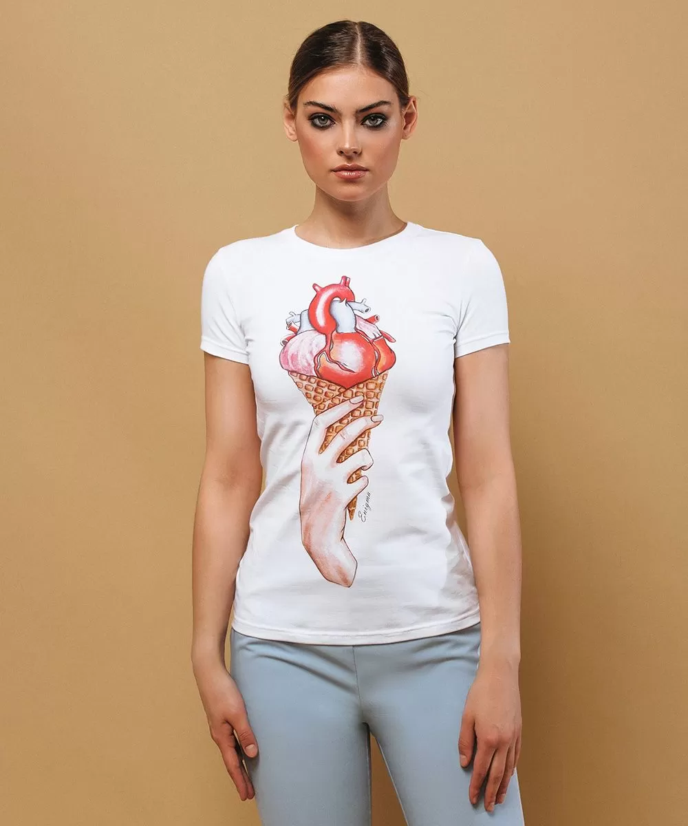 Футболка приталенного силуэта с коротким рукавом выполнена из высококачественного хлопка с добавлением эластана.