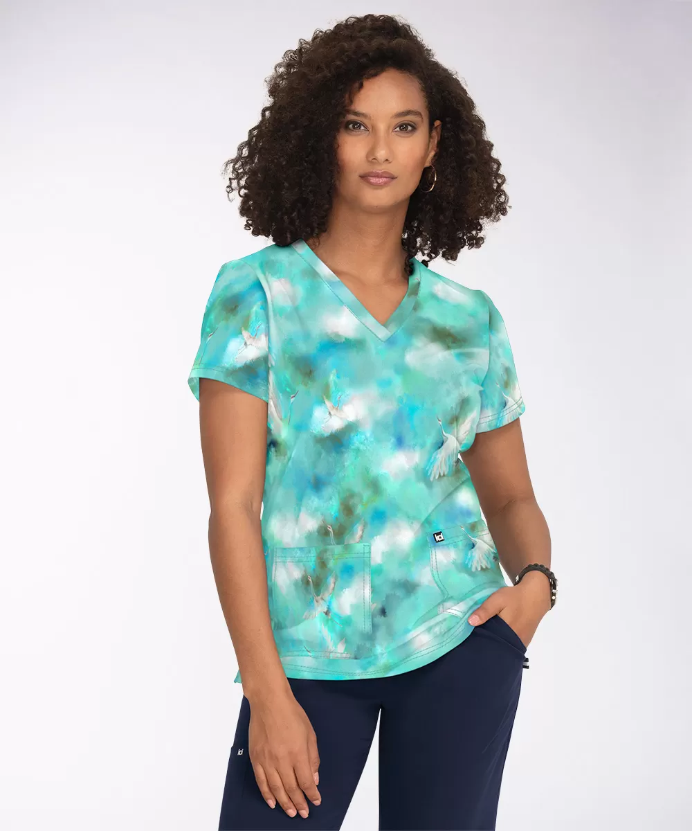 Классический современный топ из коллекции будущего Next Gen. Модель Early Energy отличается мягкими женственными линиями силуэта и оригинальными принтами, выдержанными в той же стилистике. Вырез горловины треугольный, обработанный аккуратным перекрывающимся кантом. Подол округлый, с вентиляционными разрезами в боковых швах. Впереди расположены два накладных кармана. Спинка украшена функциональной петелькой со светоотражающей лентой.