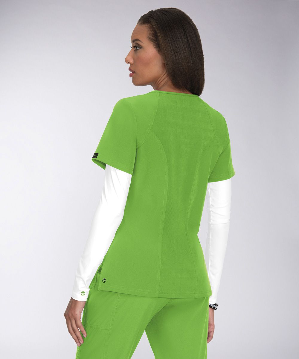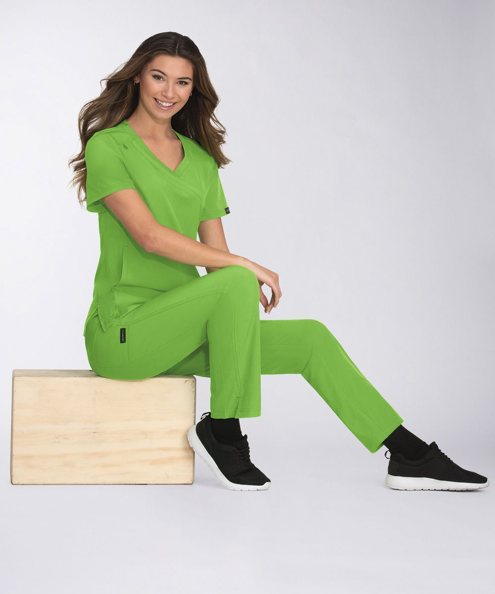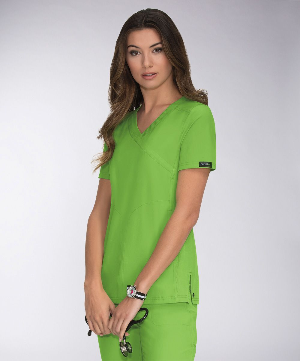 Модель отличается современной посадкой, имитацией косого запАха, V-образной горловиной с декоративной трикотажной отделкой. На спинке и боках топа - изящные вставки из ребристого трикотажа. Два удобных боковых кармана, каждый – с потайным отделением. Боковые разрезы способствуют циркуляции воздуха и поддержанию естественной температуры тела. Для наилучшего сочетания стилистики и цветов рекомендуем комбинировать эту блузу с медицинскими брюками Cherish или Nova из коллекции Planet Koi.