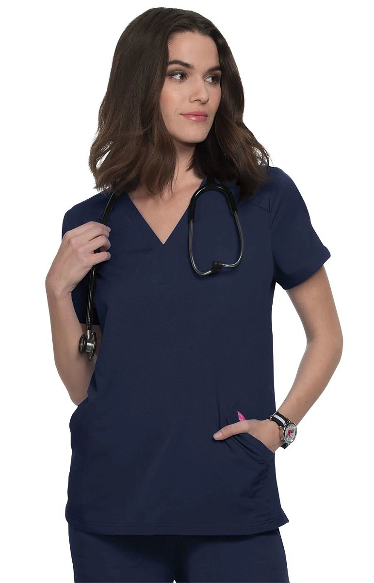 Velocity – комфортная, стильная и супердинамичная модель. Современный классический фасон подходит для любого типа фигуры. V-образная горловина с имитацией разреза акцентирована двойным швом. На плечах – спортивные погоны-кокетки, а спинка элегантно присобрана между лопаток. По бокам расположены удобные косые карманы с потайным отделением и удобным держателем для ключей. На правом плече – эластичная петелька для удостоверения личности. Подол прямой, с боковыми прорезями. Мягкая эластичная ткань дарит ощущение полной свободы движения и роскоши. А её выдающиеся гигиенические свойства помогут вам сохранить силы и хорошее настроение в течение всей смены.