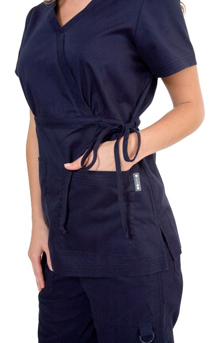 Яркий и удобный топ из легкого твила. Отличается приталенным фасоном, имитирующим запахнутое кимоно. Топ обхвачен под грудью вшитым тонким пояском, который можно регулировать шнурком-завязкой на боку. Кроме того, ткань топа присборена под грудью. Эти особенности модели позволяют ей хорошо сидеть на любой фигуре. По бокам имеются шлицы, обеспечивающие комфортную посадку топа на бедрах и дополнительный доступ воздуха к телу. Модель имеет внизу два вместительных накладных кармана. Карманы, рукава и подол красиво прострочены несколькими параллельными швами.