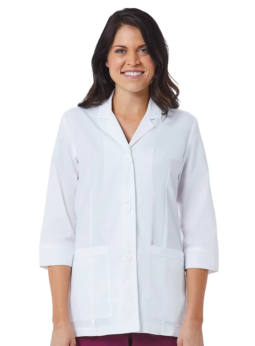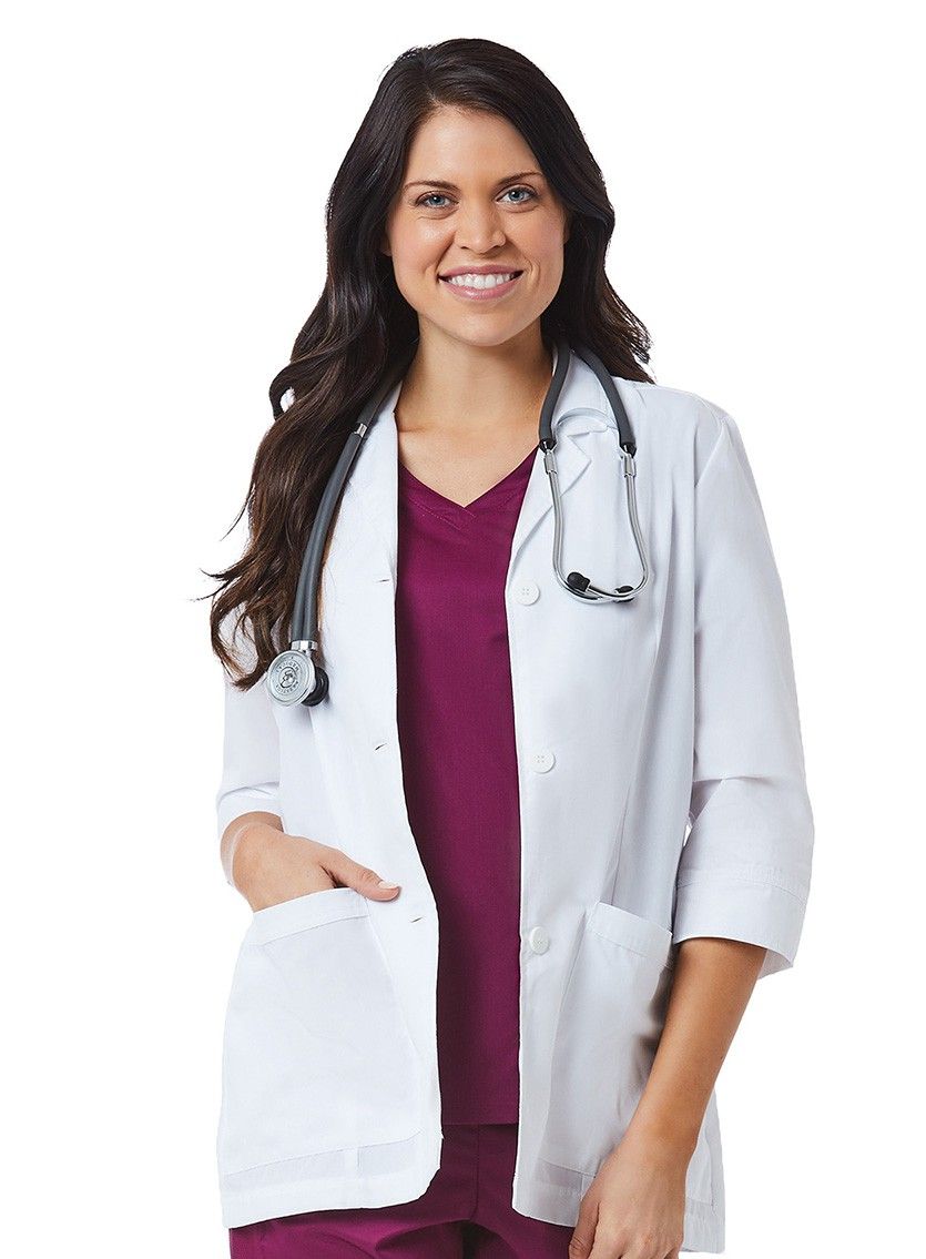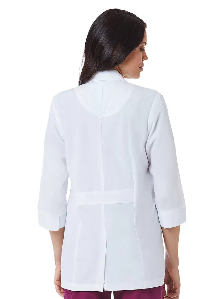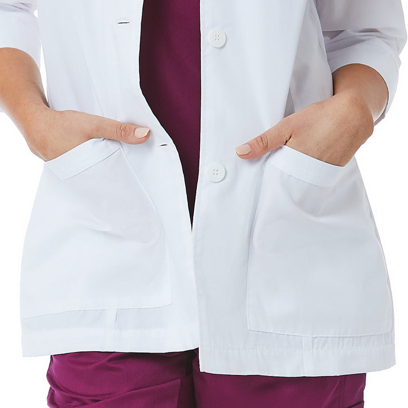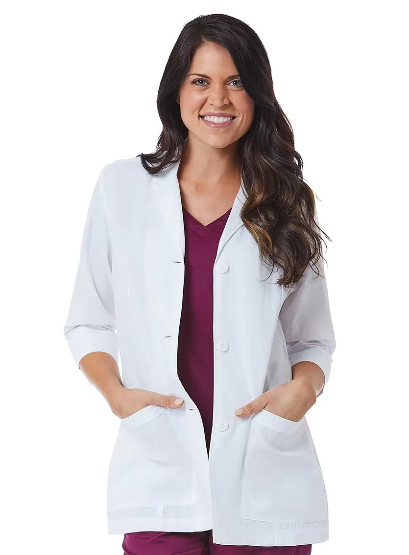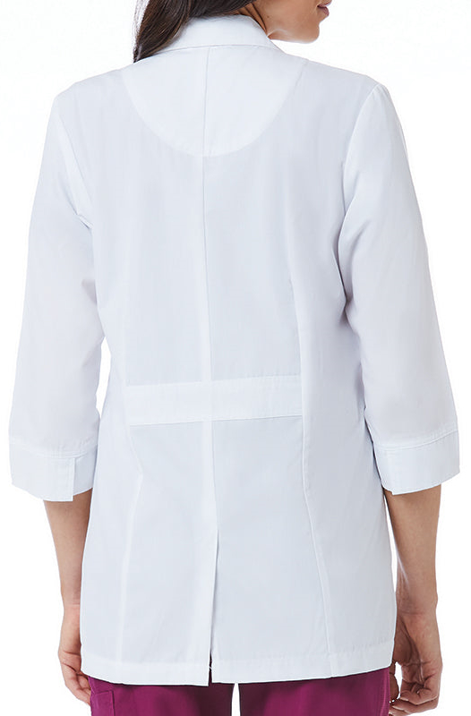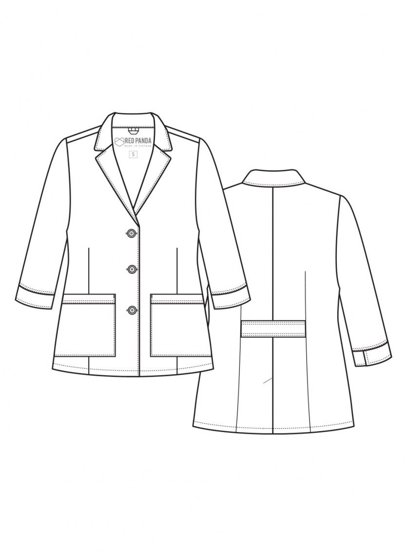 Современный медицинский жакет идеально подходит для консультативных приёмов. Перед вами необычайно стильная модель с зубчатым воротником и рукавами ¾. Манжеты широкие, с разрезами для лучшей циркуляции воздуха. Жакет застёгивается спереди на три пуговицы в тон. Выточки на спинке и полочках создают классический английский силуэт, а дополняют образ элегантный хлястик, подол со шлицей и акцентная строчка по краям деталей. Спереди расположены вместительные накладные карманы. На внутренней стороне ворота – петлица, за которую одежду можно подвесить на крючок.