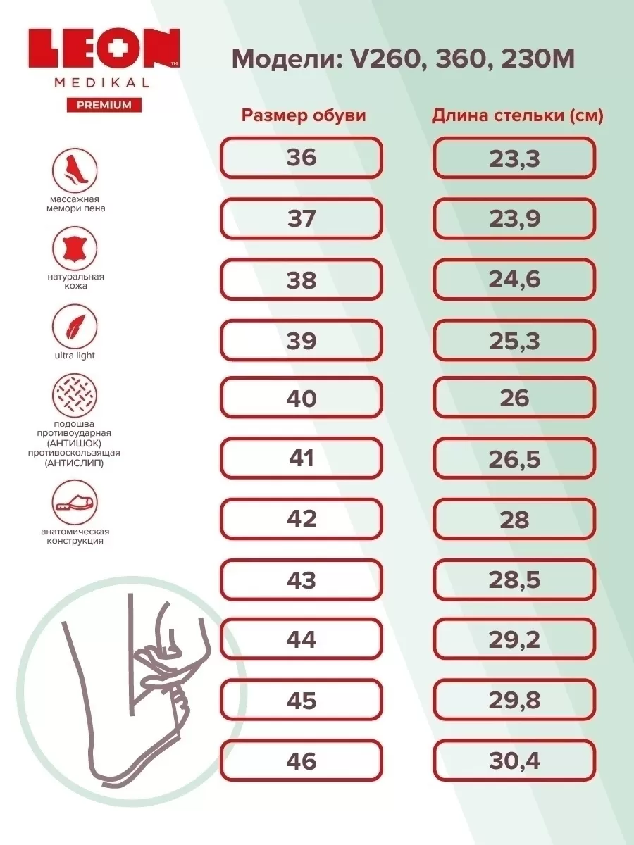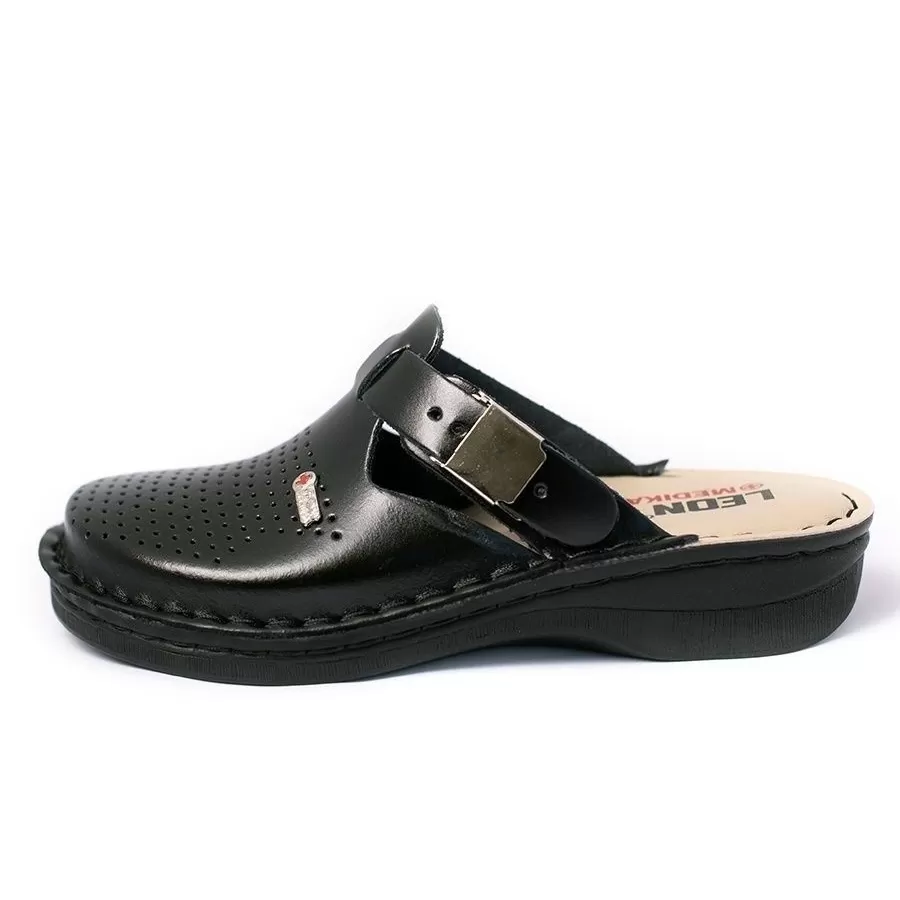 Элегантные сабо MED 260 изготовлены из натуральной кожи на лучшем европейском оборудовании. В разработке этой модели, как и всей линейки Leon Medikal, принимали участие профессиональные ортопеды. Под мягкой кожаной стелькой размещается слой массажного геля, который принимает форму вашей стопы при ходьбе. Его воздействие снимает усталость и улучшает кровообращение в области ступней.