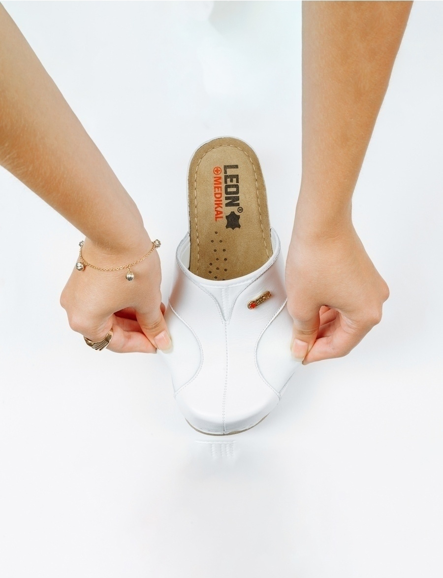 Модель MED913W – комфортные стильные сабо из натуральной мягкой кожи. Обувь разрабатывалась для медсестёр и врачей с участием профессиональных ортопедов. Верх комбинирован с эластичными вставками из плотного и упругого трикотажа. Кожаная стелька на гелиевой основе запоминает форму вашей стопы и мягко массирует подошву при ходьбе. Этот эффект снимает излишнюю потливость ног, предотвращает образование мозолей и натоптышей.
