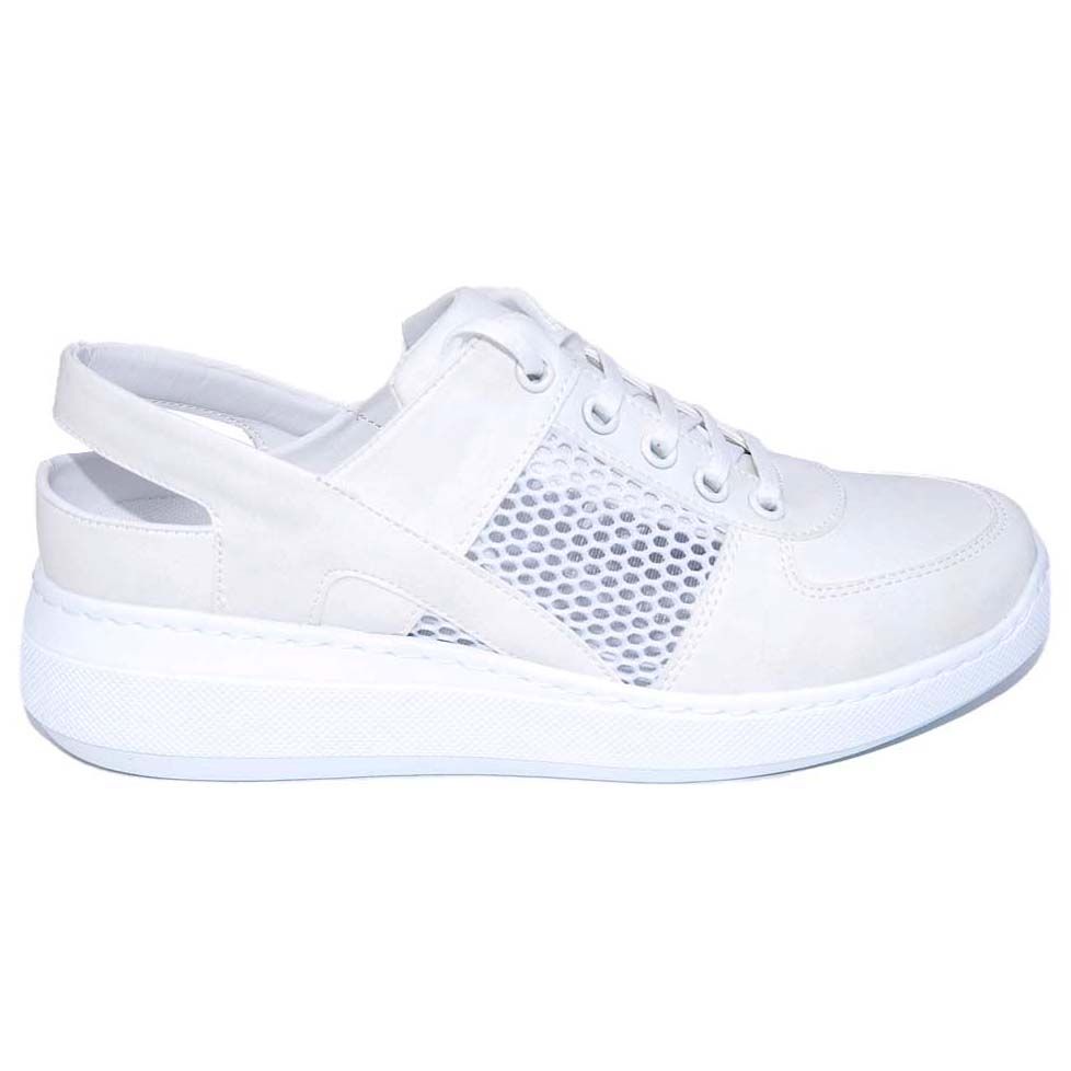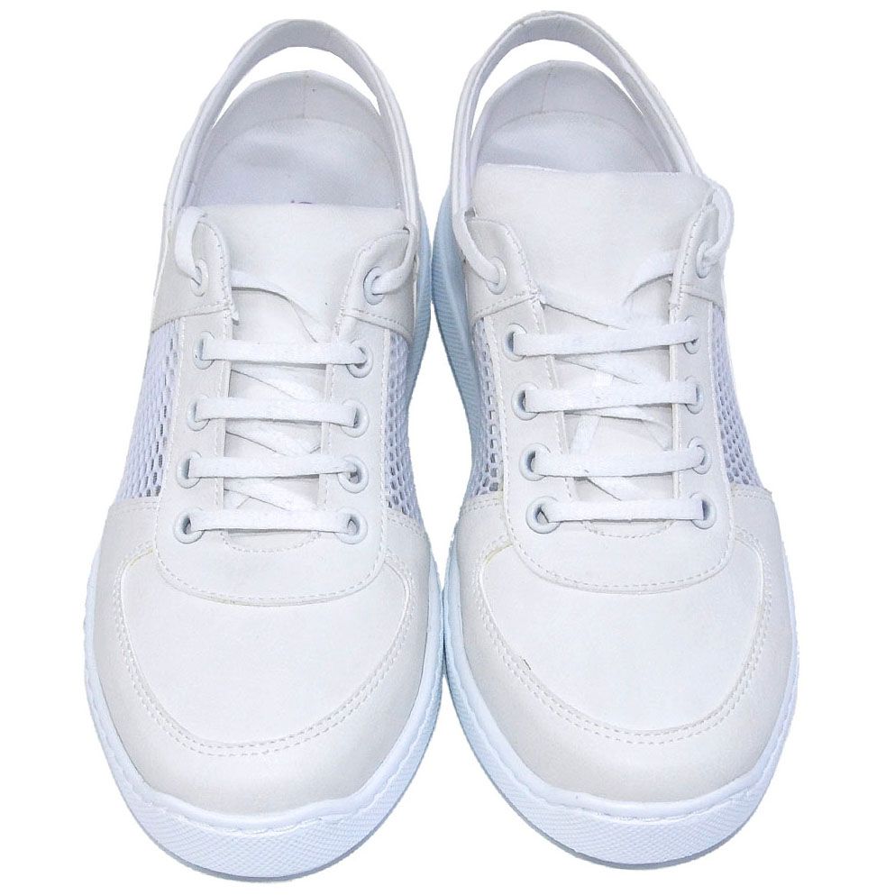 Универсальная обувь для доктора любой специальности безупречно белого цвета. Легкая и мягкая, она подходит для повседневной работы. Закрытый мысок не дает замерзнуть, открытая пятка и дышащая сеточка по бокам – вспотеть.