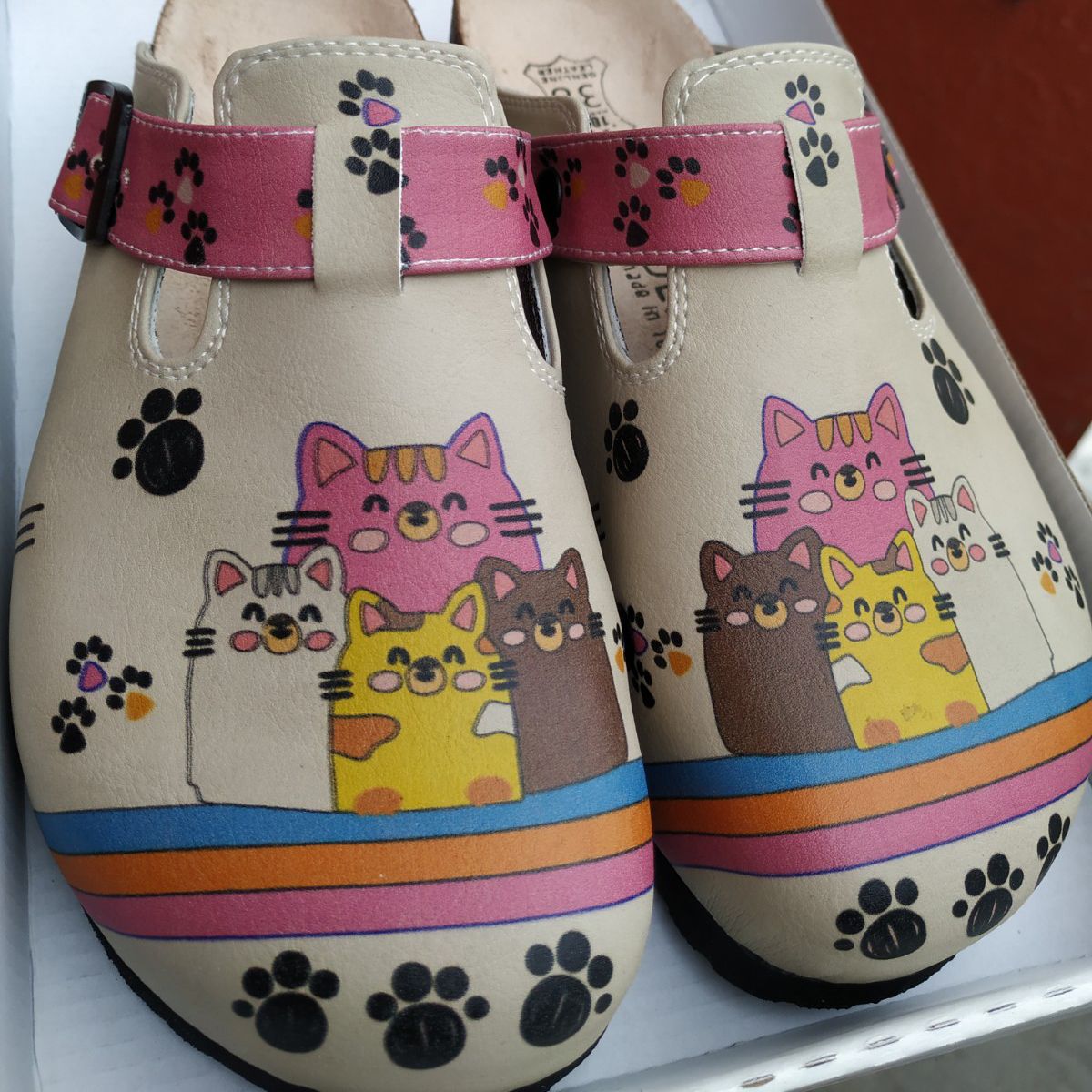 Замечательный тематический рисунок – котики и отпечатки их лапок – идеален для ветеринара, но подойдет любому, кто любит котиков. Розовый оттенок, яркий, но немаркий, часто фигурирует в медицинских костюмах. Немаловажно, что сабо ShoeRokee имеют анатомическую стельку, которая позаботится о здоровье стопы в течение всей смены.