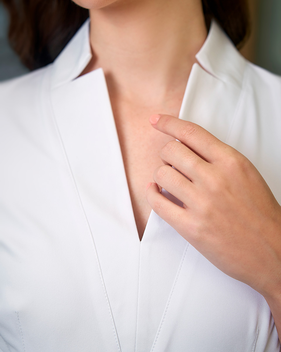 Удобные рукава 7/8, карманы, в меру открытая зона шеи и декольте, шлица и разрез сзади – все эти детали обеспечивают практичность изделия.