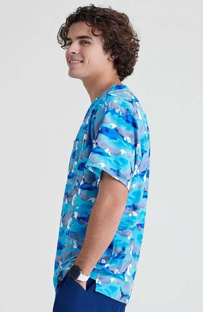 Этот потрясающий мужской топ из коллекции Skechers раскрасит ваши рабочие будни, подарит комфорт и безоблачное настроение. Особенности модели - классические треугольный вырез, нагрудный карман с отделением для авторучки, прямой подол, эластичная петлица на левом плече и, конечно же, оригинальный фирменный принт.
