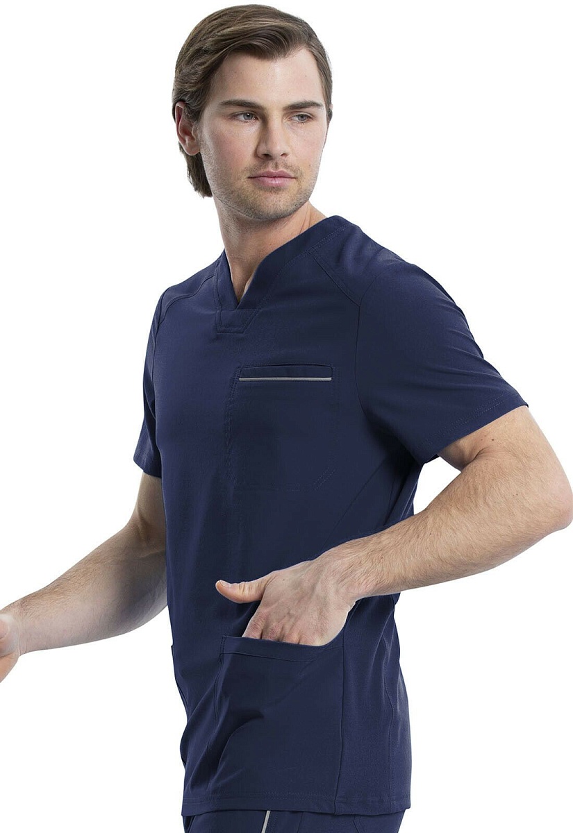 Современный мужской топ, выполненный с элементами спортивного стиля. Модель очень комфортная, с трикотажным кантом по вороту и эластичными бочками. По низу расположены широкий накладные карманы. Внутри правого - удобное отделение для смартфона. Нагрудный карман врезной, а его борт декорирован тонкой светоотражающей полоской. Качественные двойные швы обеспечивают высокую прочность одежды.