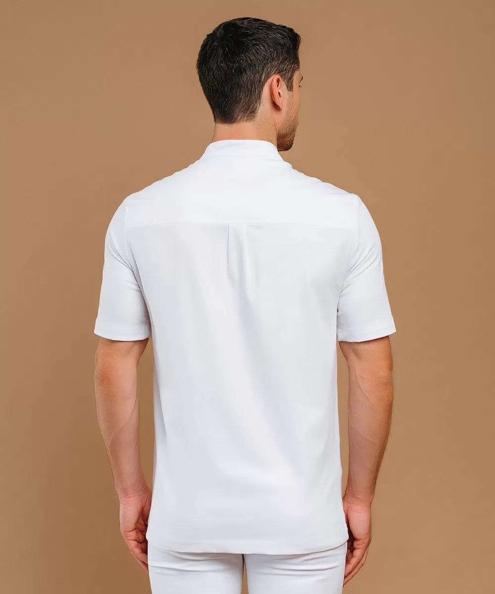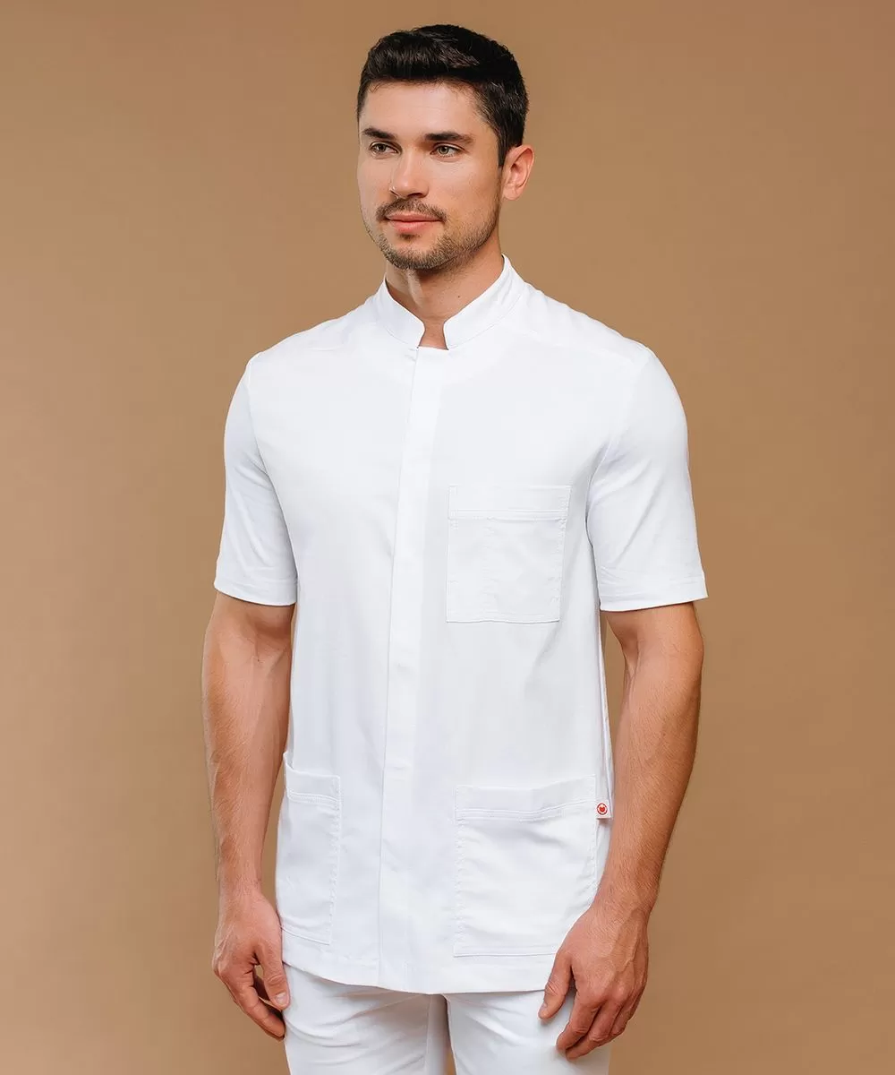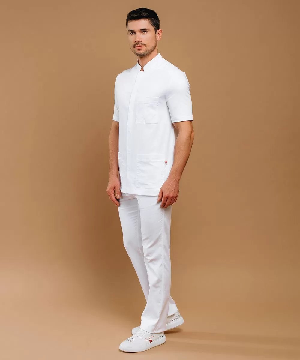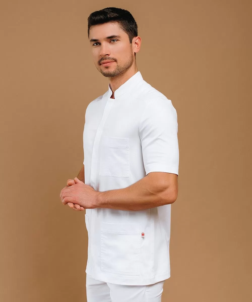 Классический мужской медицинский жакет с коротким рукавом и застежкой на кнопках.
